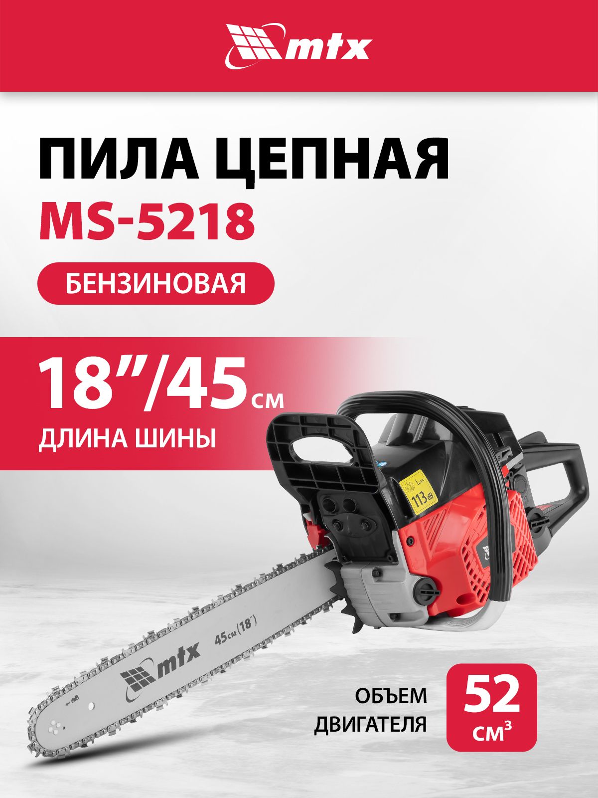 Бензопила MTX MS-5218 (3 л,с., 72-0,325"-1,5 мм, легкий запуск, 6,4 кг) (гарантия 12 мес.)
