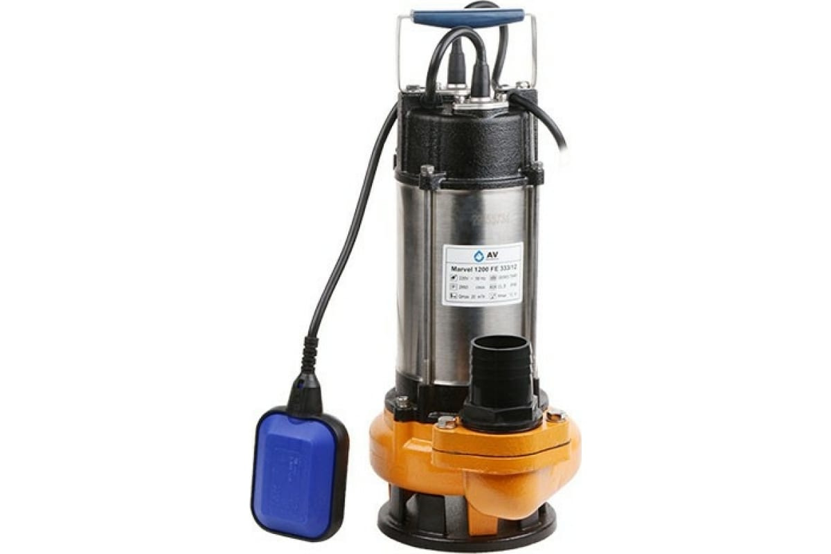 Фекальный насос AV Engineering Marvel 1200 FE 333/12 AVE118M08 - аппарат для выкачивания загрязненной воды с содержанием твердых частиц диаметром до 30 мм.