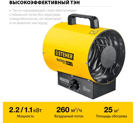 Пушка тепловая STEHER SE-3 (2,2 кВт, ТЭН, 25 м² )