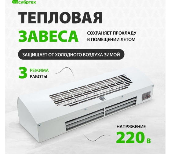 Тепловая завеса (тепловентилятор) СИБРТЕХ ТС-3000, 230 В, 3 режима, 1500/3000Вт 96441